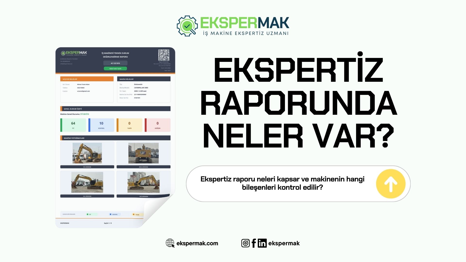 Ekspermak ile ekskavatör ekspertizi yaptırarak, hem iş güvenliğinizi hem de yatırımınızı güvence altına alabilirsiniz.